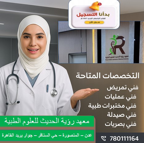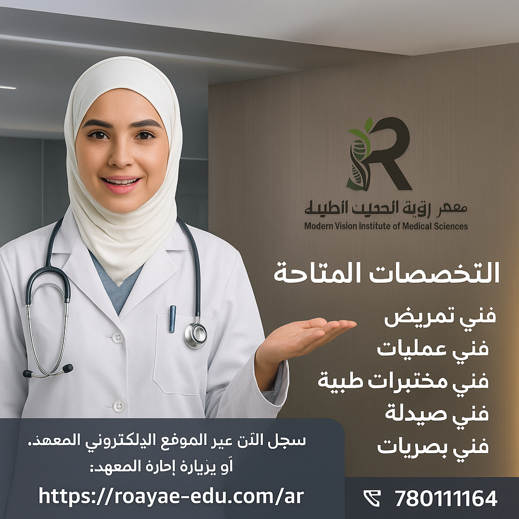 في قلب رؤية تعليمية حديثة، انطلق معهد رؤية الحديث للعلوم الطبية ليكون منارة علمية تهدف إلى تأهيل كوادر طبية متميزة تمتلك الكفاءة والمعرفة والمهارات العملية التي يتطلبها سوق العمل الصحي اليوم.